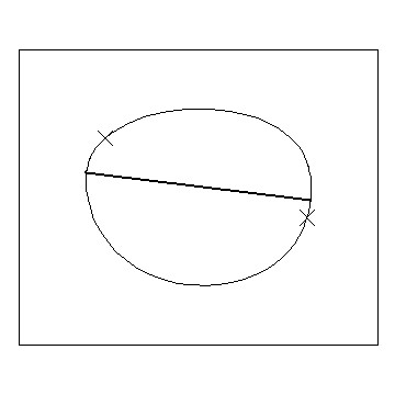 求まった直線を直径とする円を作成すると、この玉型の包絡円になります。